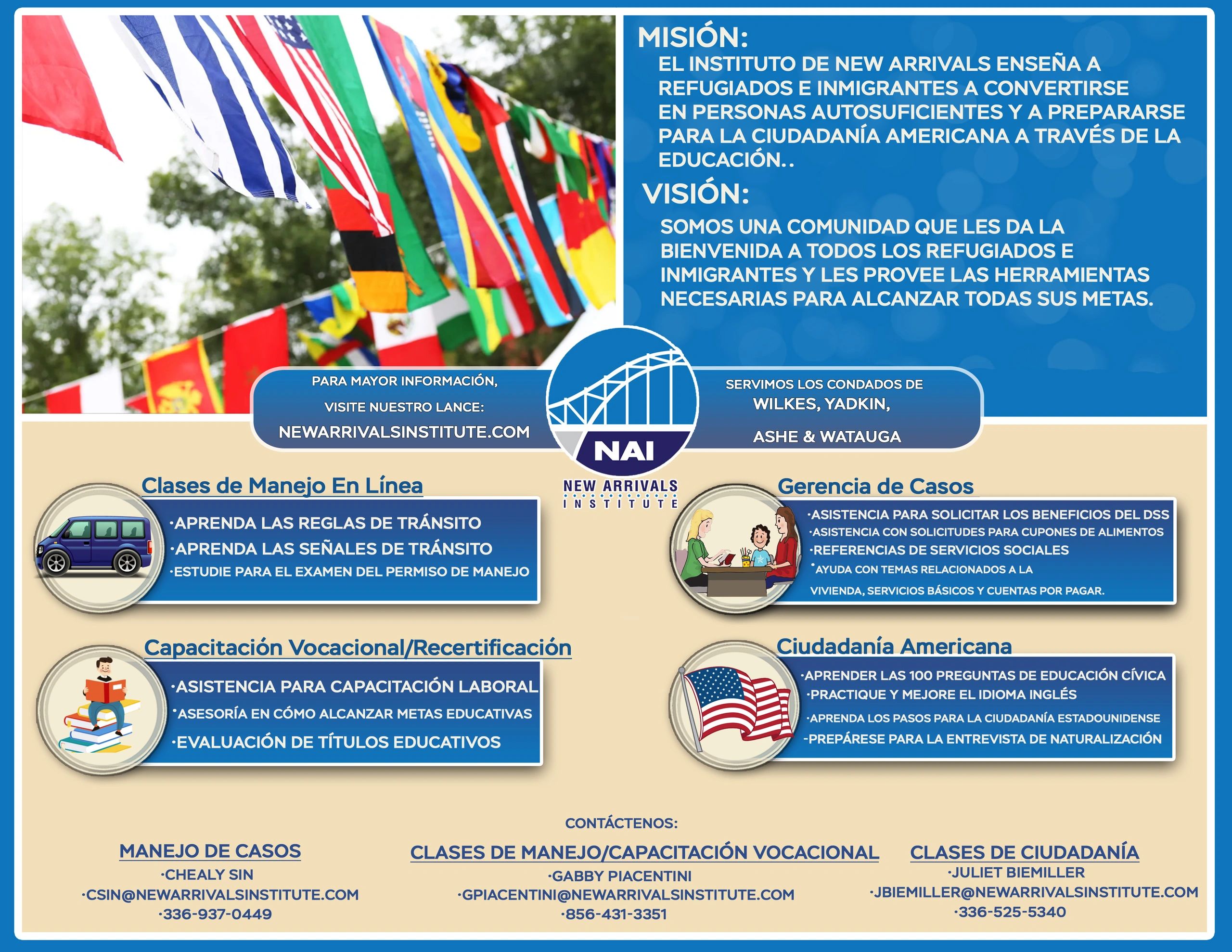 From January 2023, NAI started working closely with the NC State Refugee Office, to oversee the expansion of certain key services into the western NC countries of Watauga, Yadkin, Ashe and Wilkes. With the influx of new refugee arrivals in communities of NC that are not historically resettlement areas, the need for specialized Case Management, Skills Recertification, Vocational Education, and Vocational Skills Training became evident.